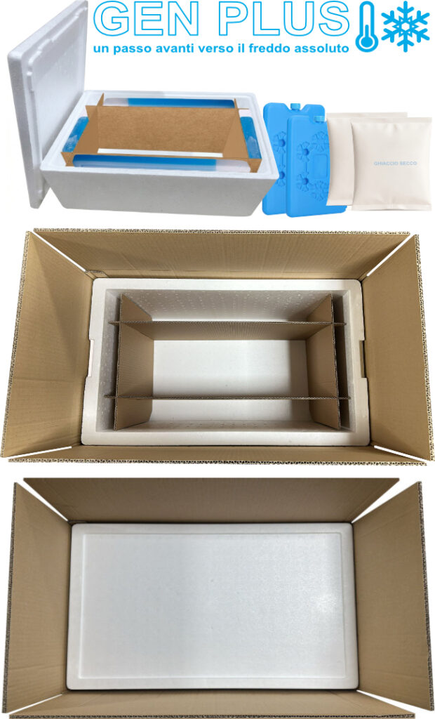 Grazie allo speciale interno perimetrale in cartone, realizzato con apposita sagoma, si crea una intercapedine che evita il contatto diretto tra il polistirolo ed il Vostro prodotto, in questa intercapedine, sarà inoltre possibile inserire panetti di ghiaccio o altro materiale refrigerante, che non sarà mai in contatto diretto con il vostro prodotto, evitando così possibili danneggiamenti dello stesso derivanti da eventuale umidità ed ottenendo il più delle volte anche un allungamento temporale della durata termica.